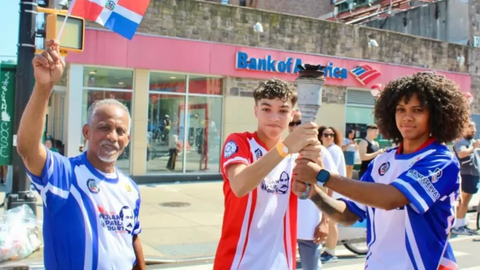 La jornada inició en la explanada de la Avenida Broadway y la calle 157 en Manhattan, donde Pedro Pablo Pérez, director técnico del evento, y José Ortiz, vicepresidente de la Unión Deportiva Dominicana, hicieron la entrega de la antorcha al primer portador.