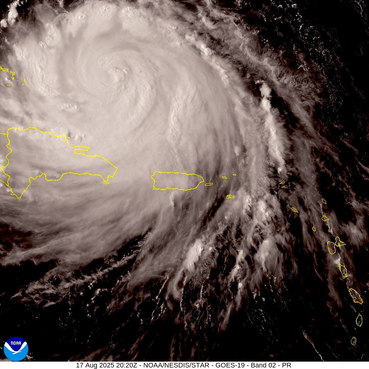 Erin sobre aguas del Atlántico mantiene vientos máximos sostenidos de 205 kph, se pronostica que se intensifique de nuevo; se mueve oeste/noroeste a 20 kph.