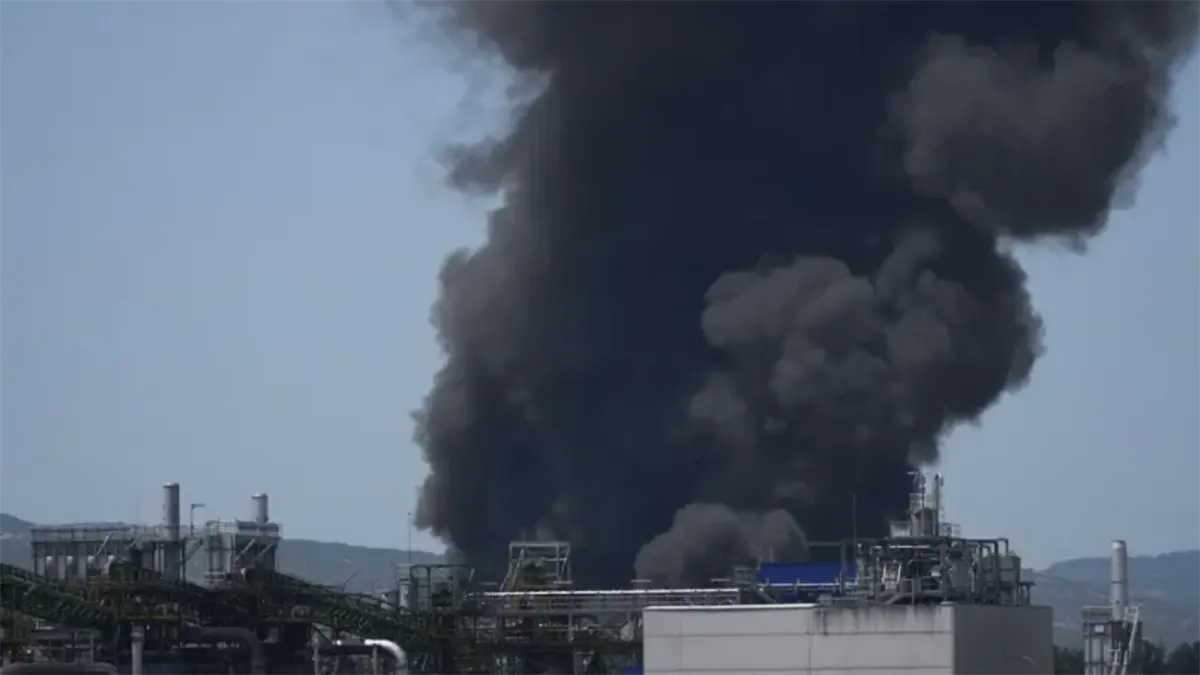 " la extinción del incendio de gran magnitud y la suspensión del suministro de gas en todo el círculo donde está ubicada la empresa.