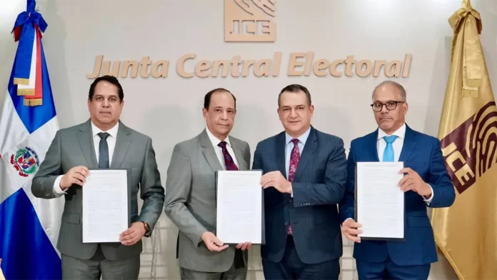 El contrato fue firmado por el presidente de la JCE, Román Andrés Jáquez Liranzo, y por los representantes de EMDOC, Franklin Geovanny Ciprián Goodin y Bernardo Antonio Pérez Díaz.